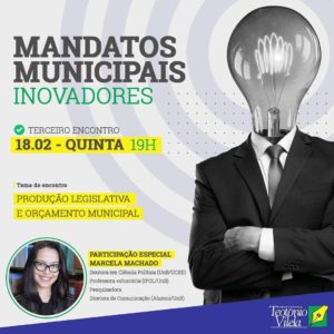 No terceiro encontro, vamos receber a professora Marcela Machado, pesquisadora e doutora em Ciência PolÃtica pela Universidade de BrasÃlia (UnB), para uma conversa sobre “Produção Legislativa e Orçamento Municipalâ€.